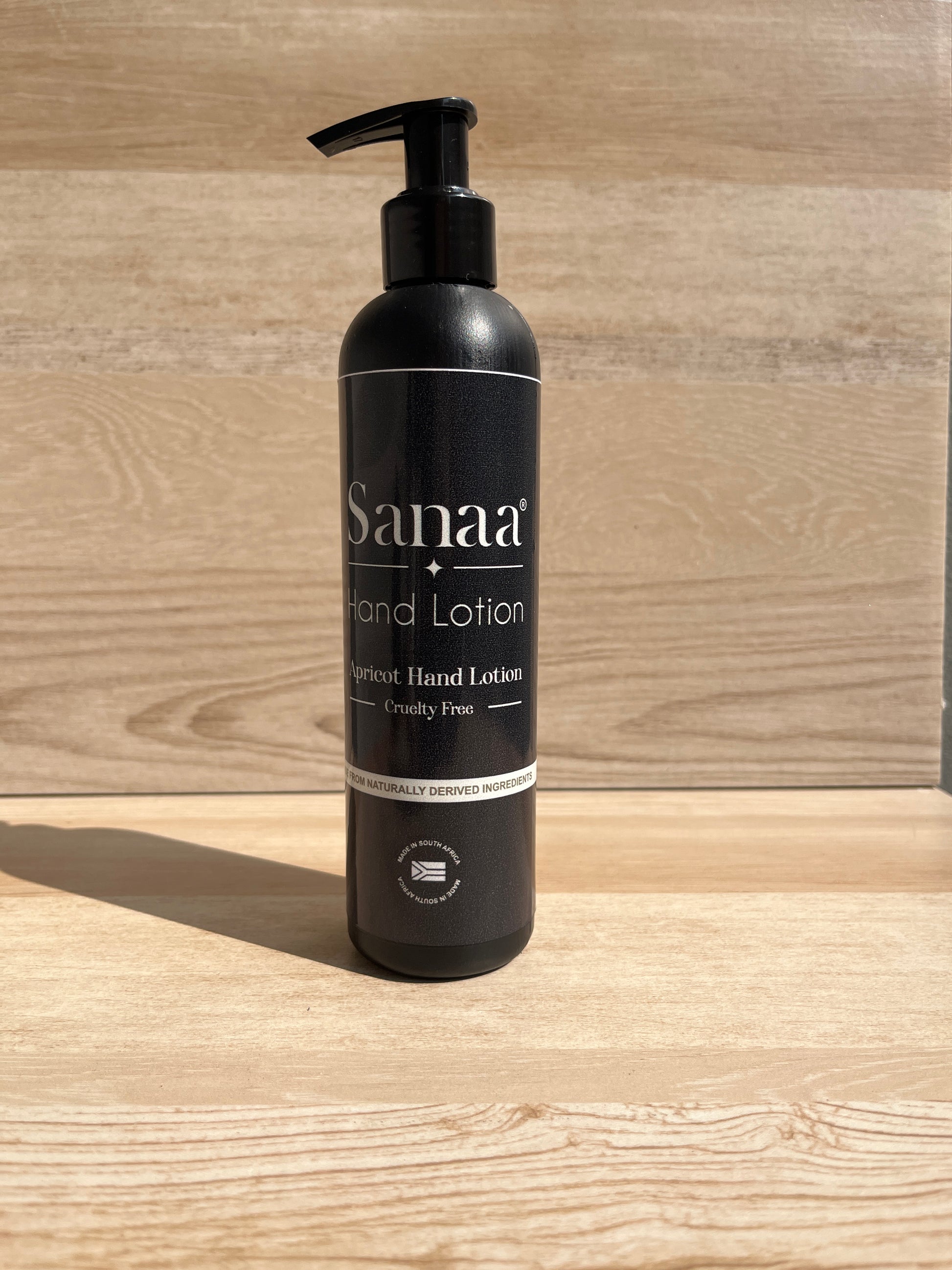 Indulge your senses with our Sanaa Hand Lotion, beautifully scented with the enchanting aroma of Apricot.